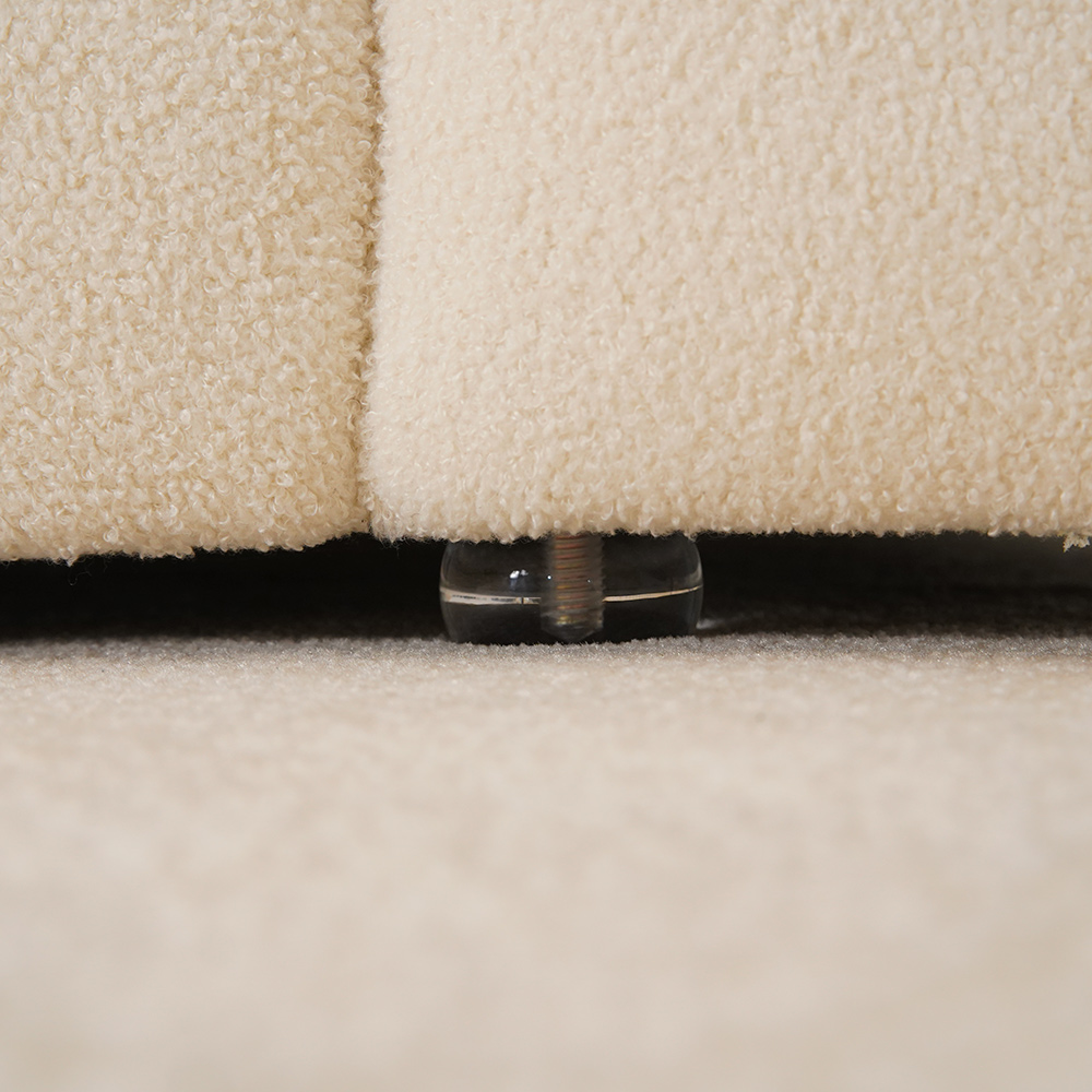 Boucle (französisch für „Schleife“) ist ein spezieller Stoff oder eine spezielle Webtechnik, die meist aus Schlaufen oder kleinen Schlaufen gebildet wird.Vermittelt ein Gefühl von Kunst und Einzigartigkeit.Fühlt sich weich und flauschig an.Es ist nicht nur ein idealer Stoff für Sofas, sondern eignet sich auch besonders gut zum Polstern von Stühlen, gebogenen Rahmen und Kopfteilen und verleiht Ihrem gesamten Wohnraum Farbe.